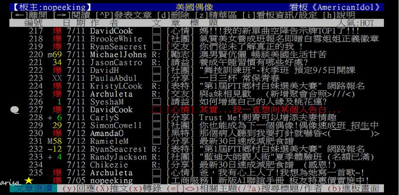 或直接按英文 S 鍵 搜尋 AmericanIdol(大小寫不拘)即可進入看板